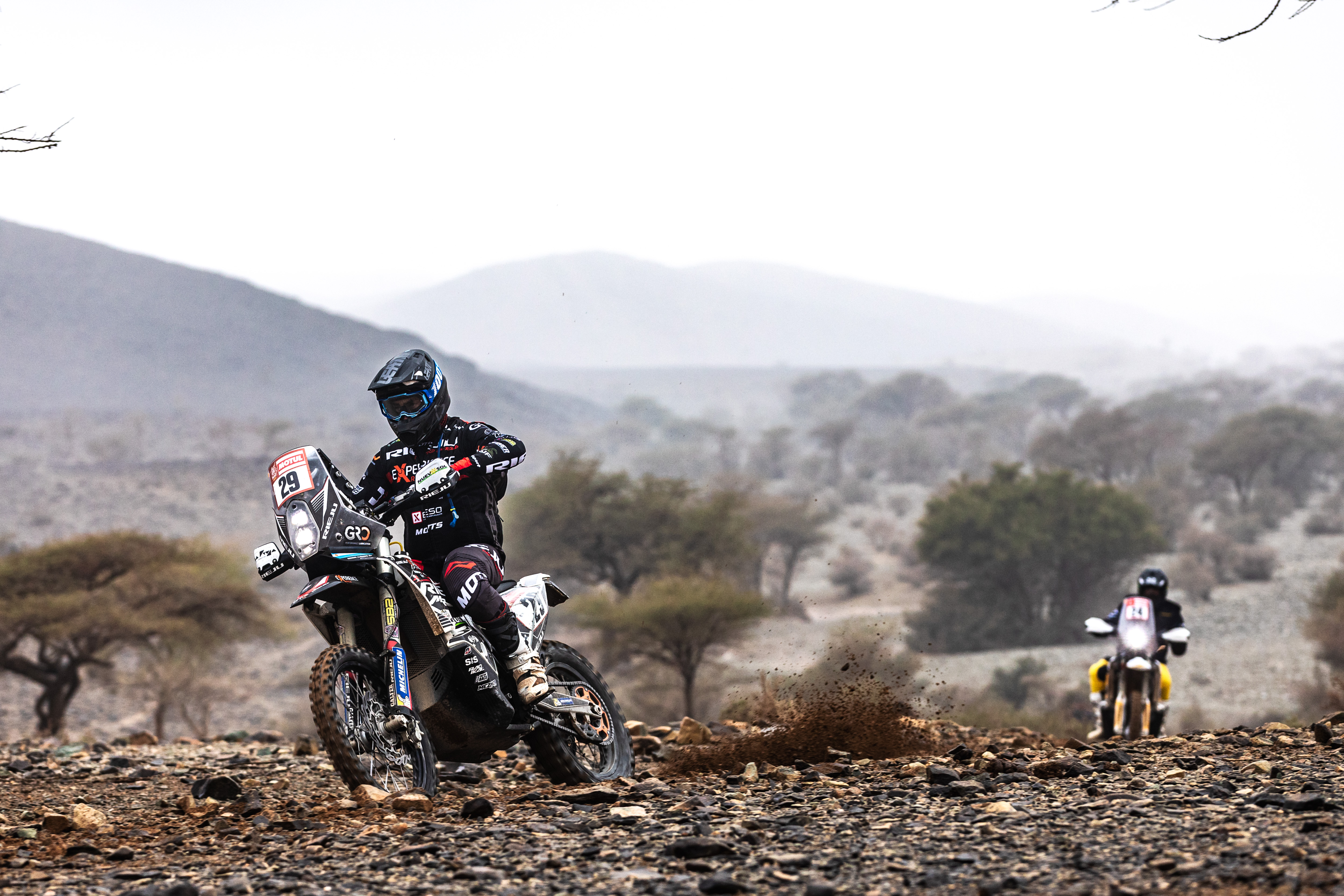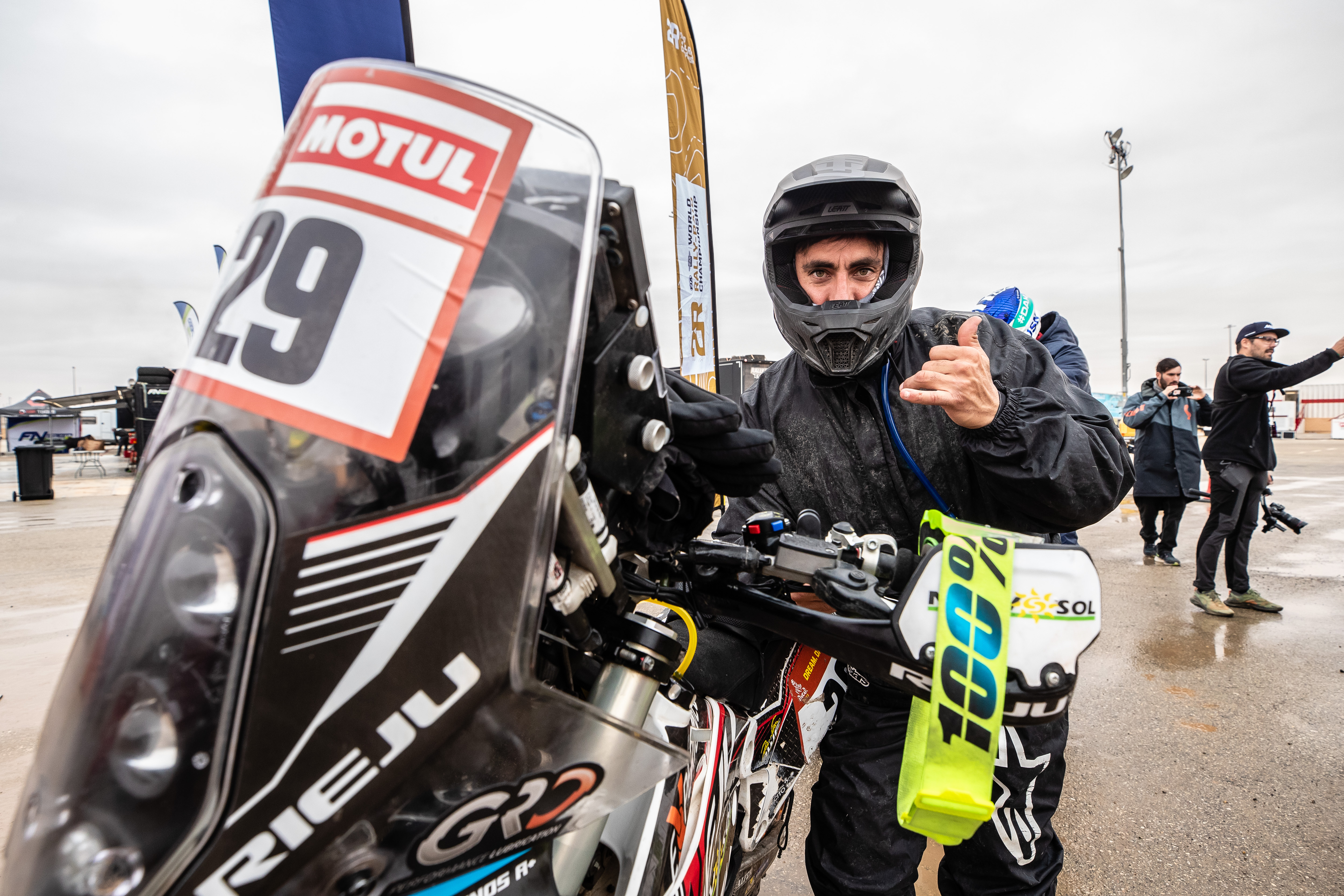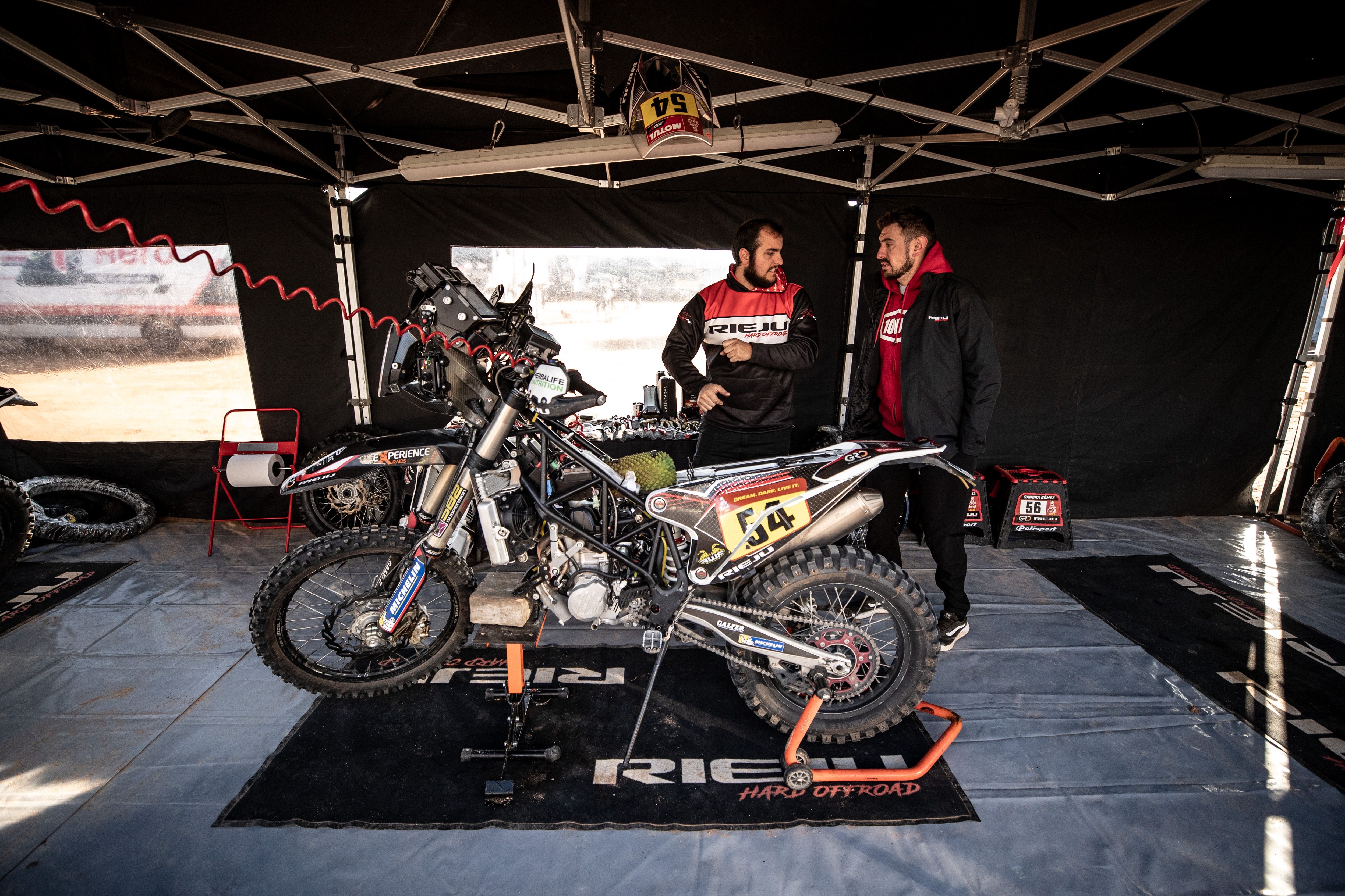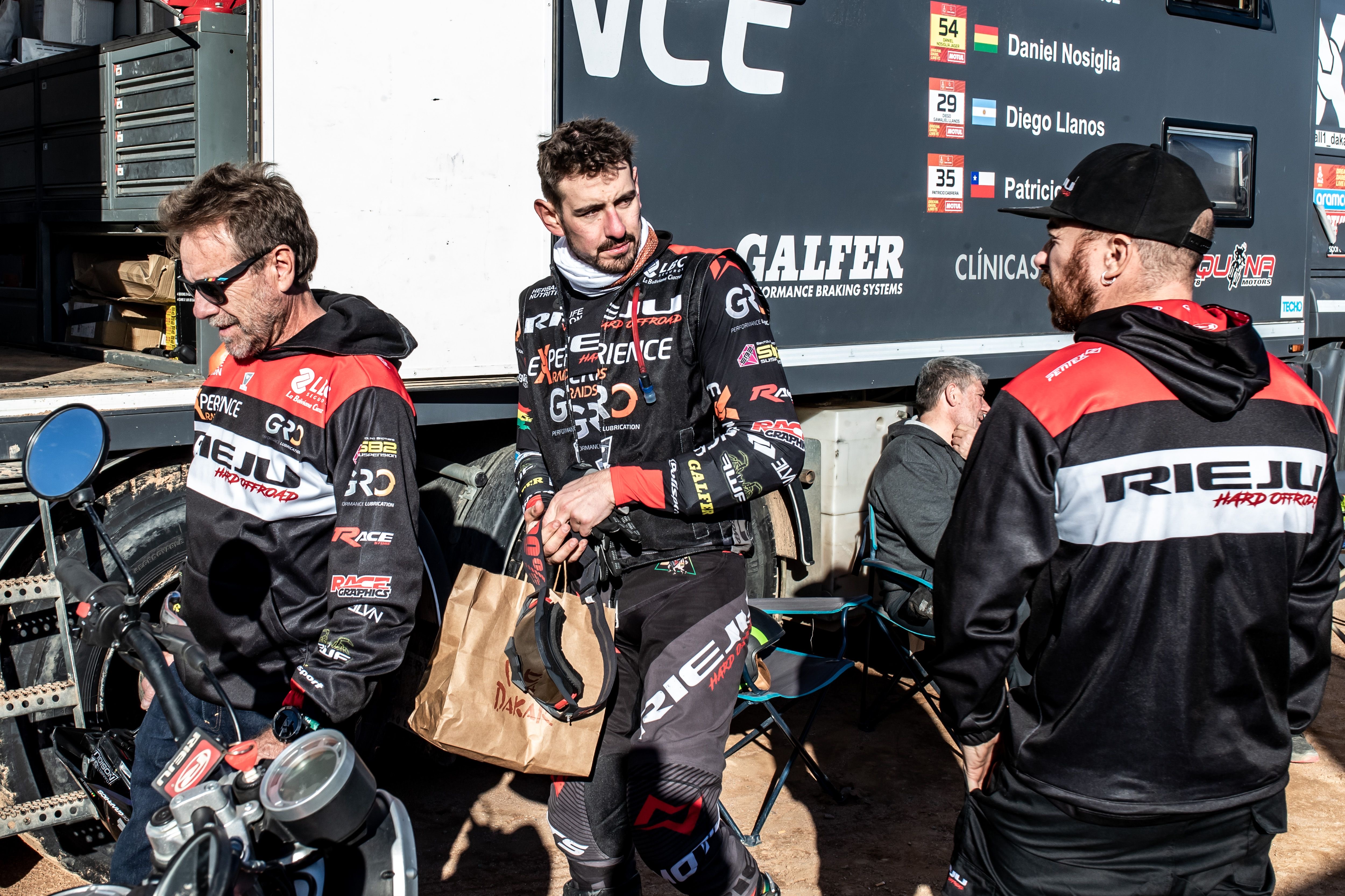 “He salido apretando desde el inicio, venía con buen ritmo hasta el kilómetro 100 que ahí bajé un poco la velocidad. Sabía que iba bien ya que estaba acortándole tiempo a Dani y a Joan Pedrero que habían ganado como 20 minutos delante de mí. Salí del refueling y a los 10km tuve un problema, perdí una tuerca del tope del tensa cadenas de la rueda trasera, estuve más o menos una hora hasta que unos árabes con los que me hice amigo me ayudaron a buscarla, gracias ellos la encontramos y pudimos hacer un invento para poder salir. Pero bueno, pudimos acabar un día más, fue duro, 400 y pico kilómetros, pero contento de estar acá. Muy agradecido con todo el equipo que cuando me quedé parado no dudaron ni un momento llamarme por teléfono y venir a buscarme para mirar de solucionar el problema. Ahora a descansar y pensar en la próxima semana”.