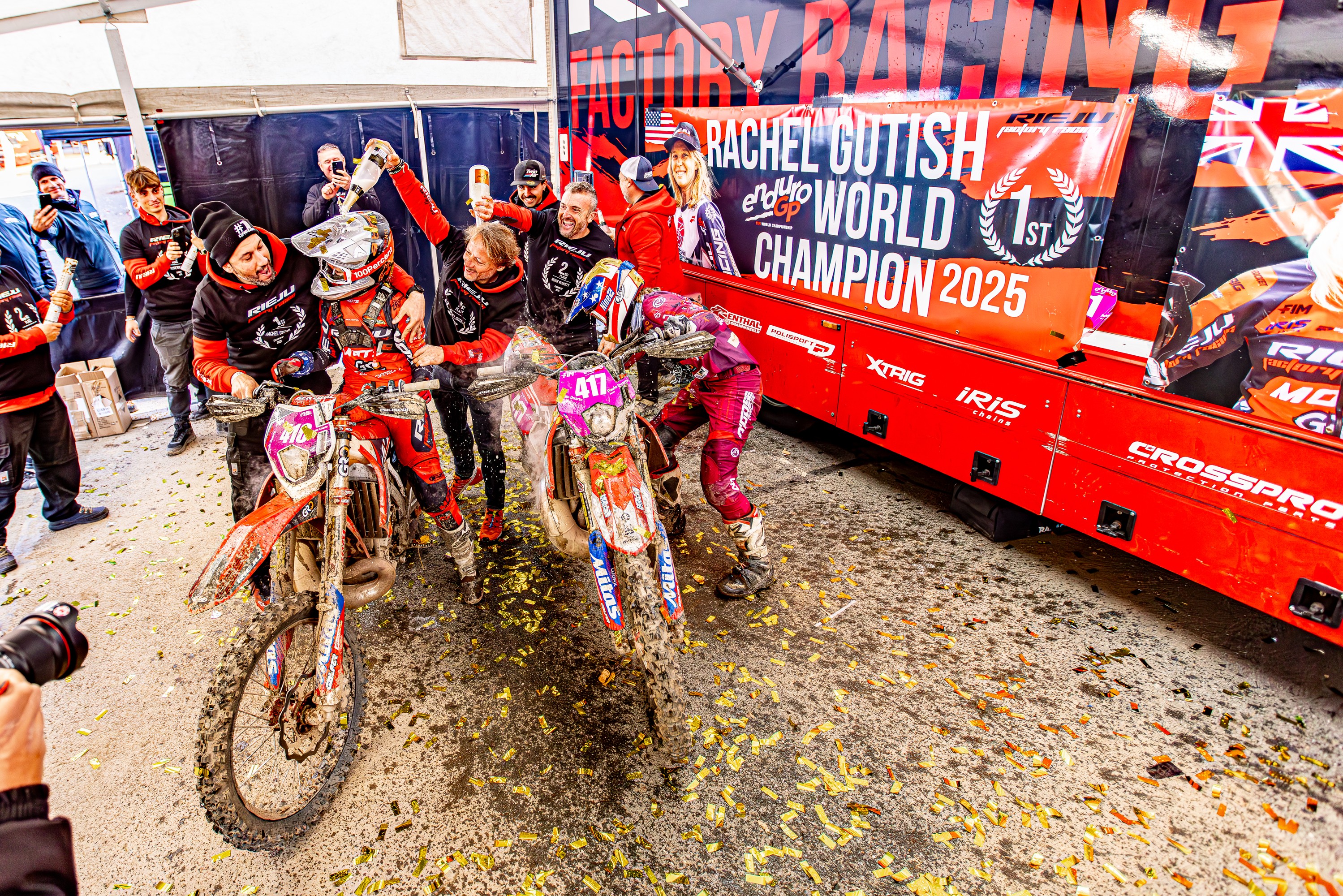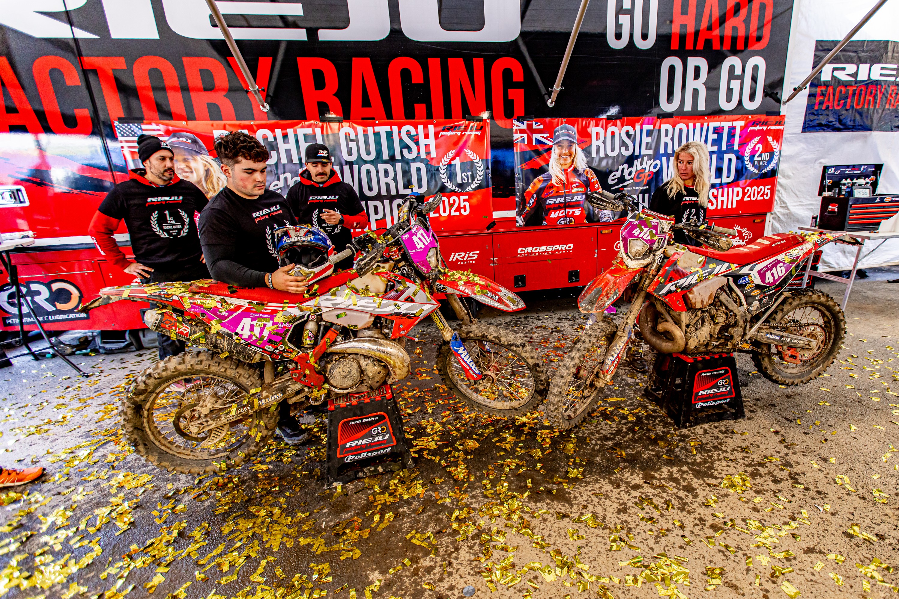 The RIEJU Factory Team makes history once again in the 2025 FIM EnduroGP World Championship, claiming its second consecutive Women’s World Title with U.S. rider Rachel Gutish, while British rider Rosie Rowett completes a fantastic result for the team by stepping onto the final podium as World Vice-Champion.